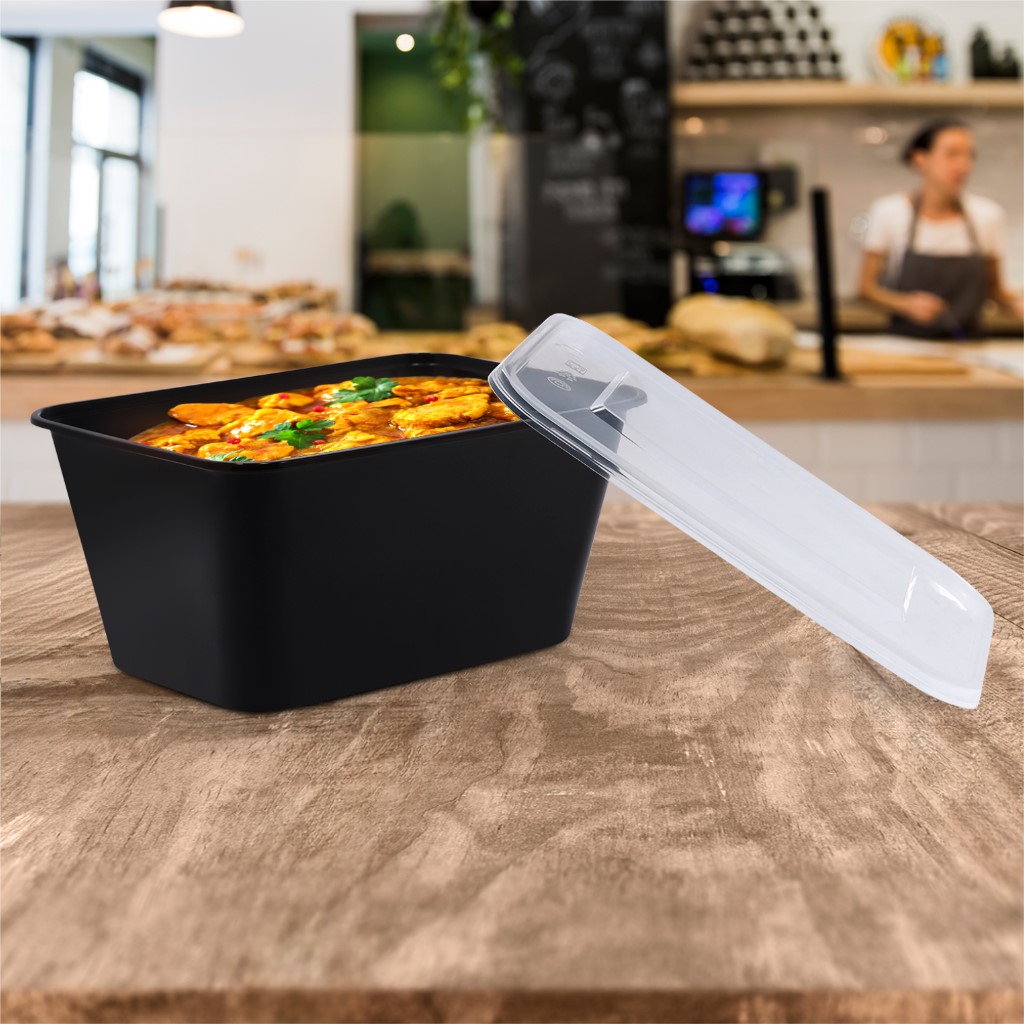 From refrigerator to microwave to table. Offering a high-quality design, the Packwell rectangle microwave container with clear lid ensures convenience and hygiene. This set includes 500 pieces, each with a 1000-ml capacity, and allows you to pack, store, or reheat your favourite food easily. This microwavable container is constructed of high-quality BPA-free and food-grade materials, ensuring your safety and prioritising your health. With its anti-bacterial and anti-fungal properties, food will remain fresh and free of bacterial or fungal growth. In addition to providing a safe way to pack orders for restaurants or caterers, these containers are very useful for busy people who prepare meals in advance. Plus, the black containers with matching lids that come in the package make it easy to keep things covered. The clear lid allows you to easily monitor the contents inside. Microwavable containers are also odour-proof at any temperature and do not release pungent smells while reheating. The rectangle containers have a compact and stackable design, making them easy to store and saving valuable space in the kitchen or fridge. Made from the highest quality materials, this microwave container with lid is a versatile and reliable investment to meet your requirements.