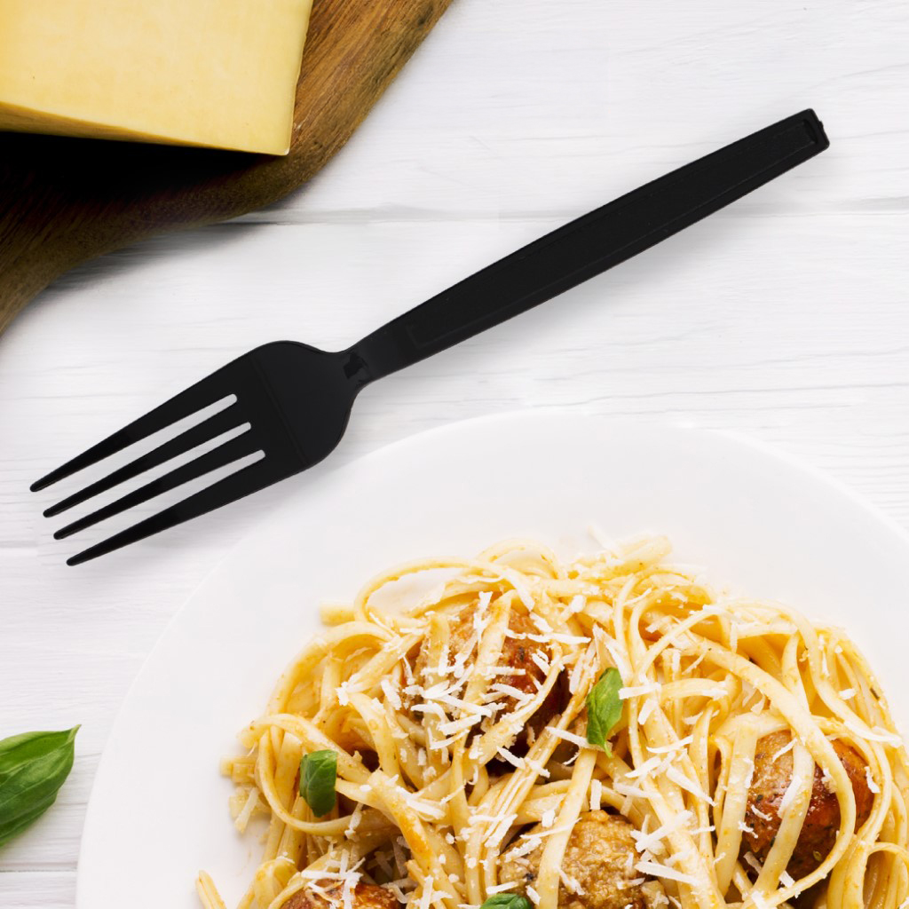 The perfect way to enhance your dining experience. Offering a high-quality design, the Packwell black HD fork offers exceptional durability and functionality for various needs. Made from premium-quality, BPA-free, and food-grade materials, this plastic fork is safe and hygienic. These plastic forks weigh only 4.35 grams, making them light in weight, convenient to use, and large enough to hold a reasonable amount of food. It is commonly used for packing, takeout, catering, large gatherings, etc. to securely hold meats, vegetables, mini bites, etc. This pack contains 40 packets of 50 forks, so you\’ll have enough to meet your needs. This plastic fork is constructed of high-quality BPA-free and food-grade materials, ensuring your safety and prioritising your health. With its anti-bacterial and anti-fungal properties, food will remain fresh and free of bacterial or fungal growth. The fork is also odour-proof at any temperature and does not absorb or retain odour from the food it holds. Their simple yet ergonomic design provides comfort. Made from the highest-quality materials, these black HD forks are a versatile and reliable investment for all your needs.