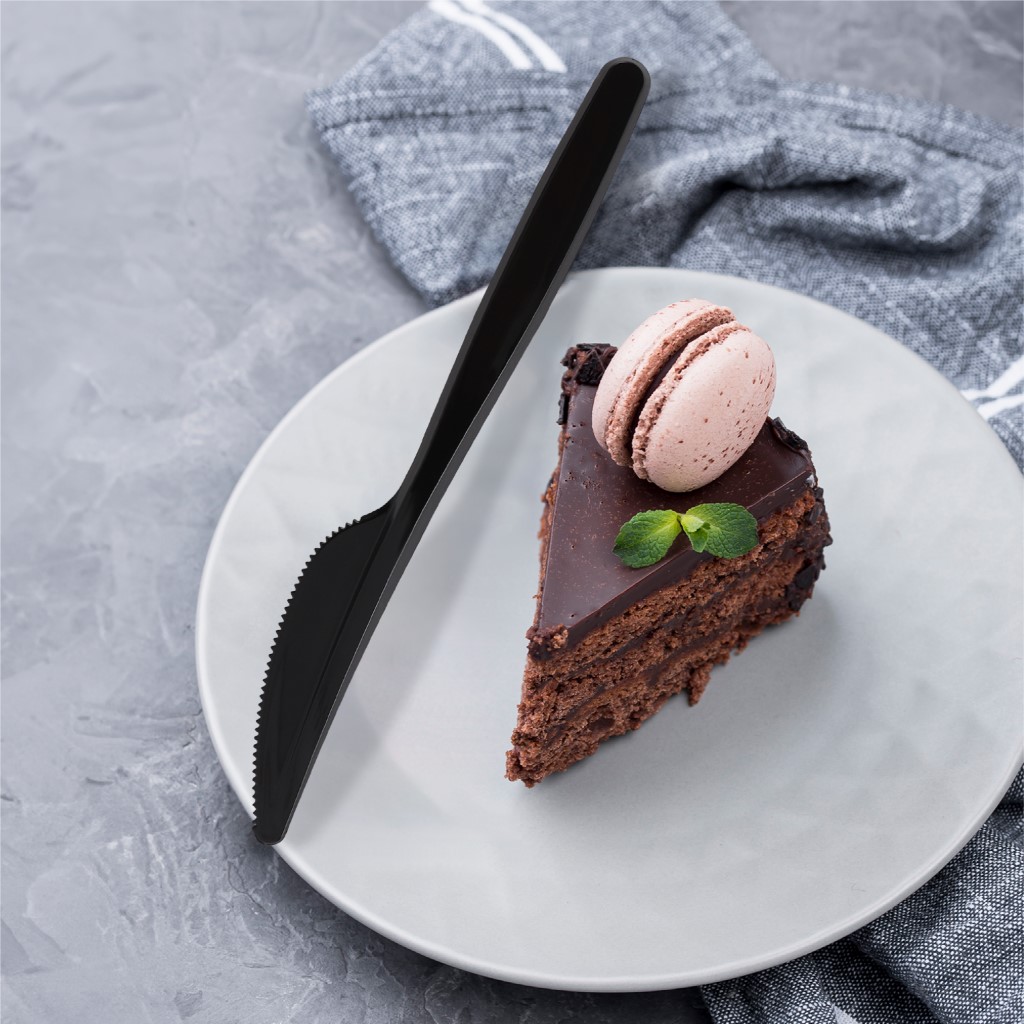 Perfect for any occasion. Offering a high-quality design, the Packwell black MD knife offers exceptional durability and functionality for various needs. Made from premium-quality, BPA-free, and food-grade materials, this plastic knife is safe and hygienic. These plastic knives weigh only 3.2 grams, making them light in weight, convenient to use, and large enough to hold a reasonable amount of food. It is commonly used for packing, takeout, catering, large gatherings, etc. to slice soft and sticky foods like brownies, spreads, cake, bread, some vegetables, etc. This pack contains 40 packets of 50 knives, so you’ll have enough to meet your needs. This plastic knife is constructed of high-quality BPA-free and food-grade materials, ensuring your safety and prioritising your health. With its anti-bacterial and anti-fungal properties, food will remain fresh and free of bacterial or fungal growth. The knife is also odour-proof at any temperature and does not absorb or retain odour from the food it holds. Their simple yet ergonomic design allows for comfort. Made from the highest-quality materials, these black MD knives are a versatile and reliable investment for all your needs.