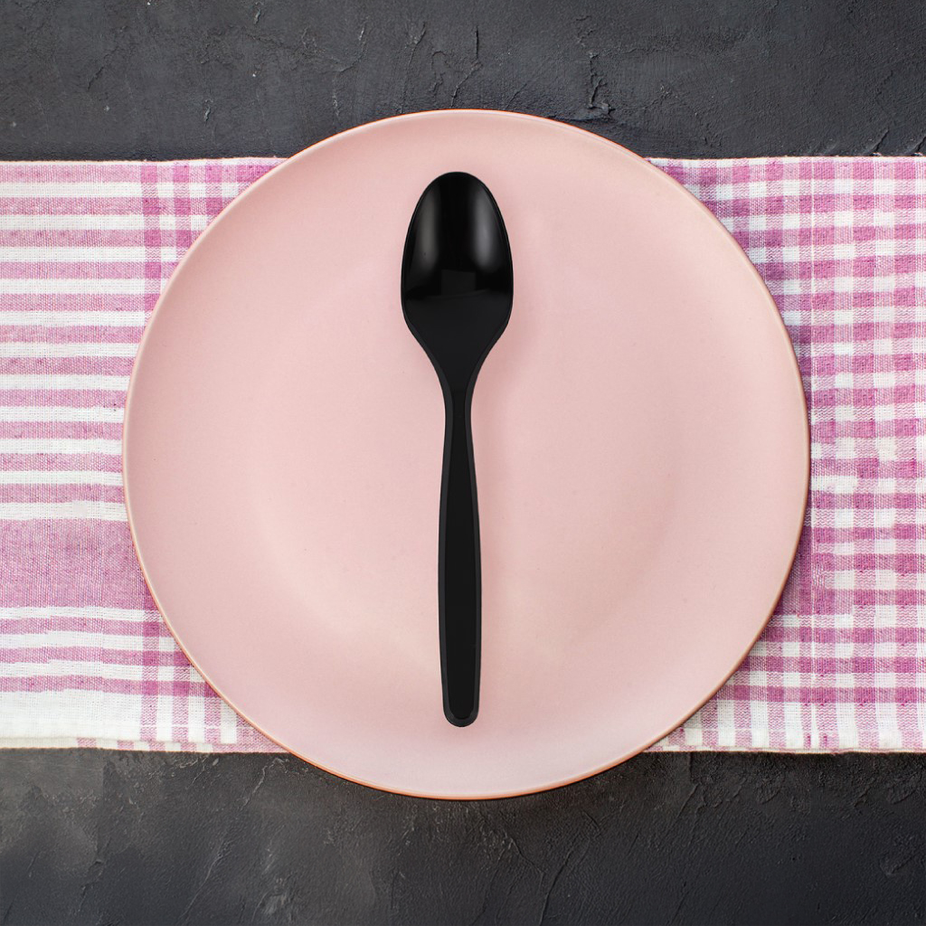 Feast with comfort. The Packwell black MD spoon has a premium look and provides outstanding utility and durability for a range of applications. Made from premium-quality, BPA-free, and food-grade materials, this plastic spoon is safe and hygienic. These plastic spoons weigh only 3.2 grams, making them light in weight, convenient to use, and large enough to hold a reasonable amount of food. It is commonly used for packing, takeout, catering, large gatherings, etc. for desserts, pickles, salads, ice creams, etc. This pack contains 50 spoons, so you’ll have enough to meet your needs. This plastic spoon is constructed of high-quality BPA-free and food-grade materials, ensuring your safety and prioritizing your health. With its anti-bacterial and anti-fungal properties, food will remain fresh and free of bacterial or fungal growth. The spoon is also odor-proof at any temperature and does not absorb or retain odor from the food it holds. Their simple yet ergonomic design allows for comfort. Made from the highest-quality materials, these black MD spoons are a versatile and reliable investment for all your needs.