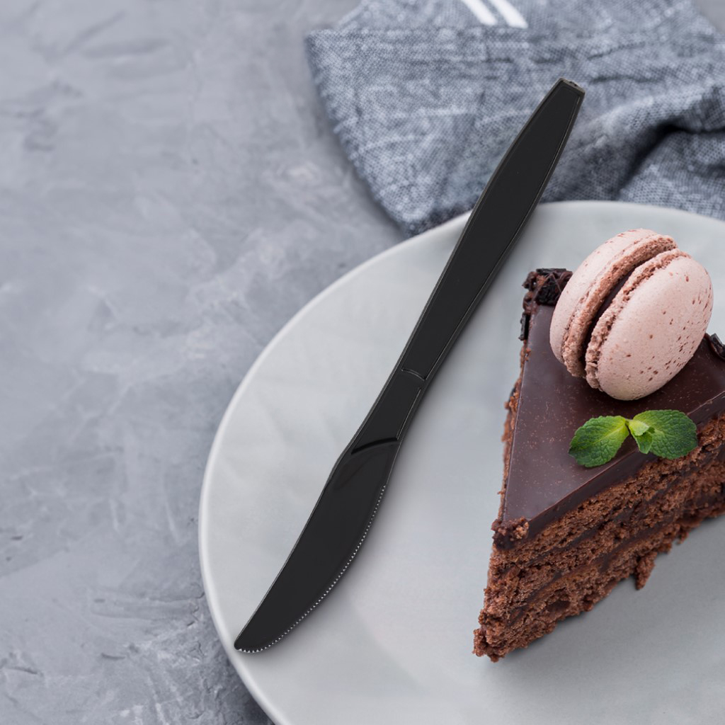 The ideal answer to hassle-free eating. The Packwell Black HD knife has an excellent design and provides outstanding usefulness and durability for a range of applications. Made from premium-quality, BPA-free, and food-grade materials, this plastic knife is safe and hygienic. These plastic knives weigh only 4.0 grams, making them light in weight, convenient to use, and large enough to hold a reasonable amount of food. It is commonly used for packing, takeout, catering, large gatherings, etc. to slice soft and sticky foods like brownies, spreads, cake, bread, some vegetables, etc. This pack contains 50 knives, so you’ll have enough to meet your needs. This plastic knife is constructed of high-quality BPA-free and food-grade materials, ensuring your safety and prioritizing your health. With its anti-bacterial and anti-fungal properties, food will remain fresh and free of bacterial or fungal growth. The knife is also odor-proof at any temperature and does not absorb or retain odor from the food it holds. Their simple yet ergonomic design allows for comfort. Made from the highest-quality materials, these plastic knives are a versatile and reliable investment for all your needs.