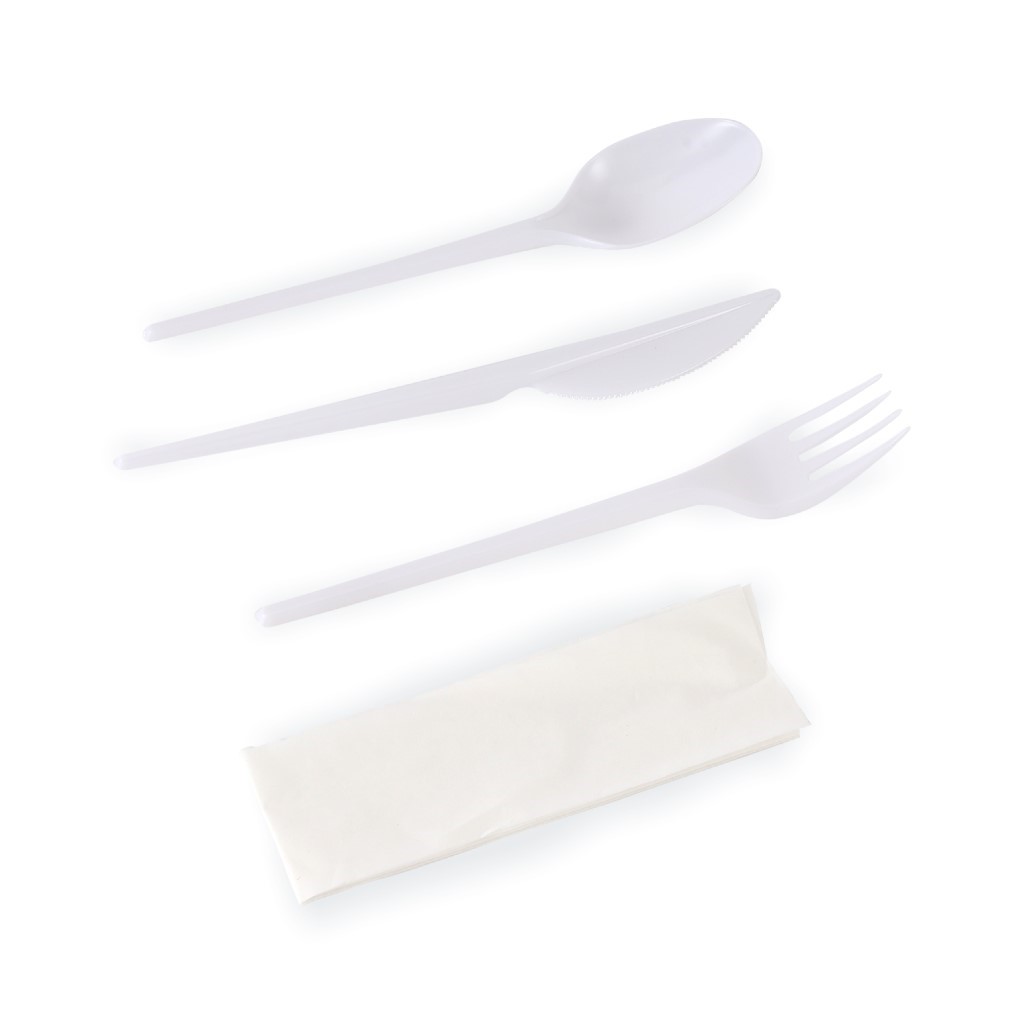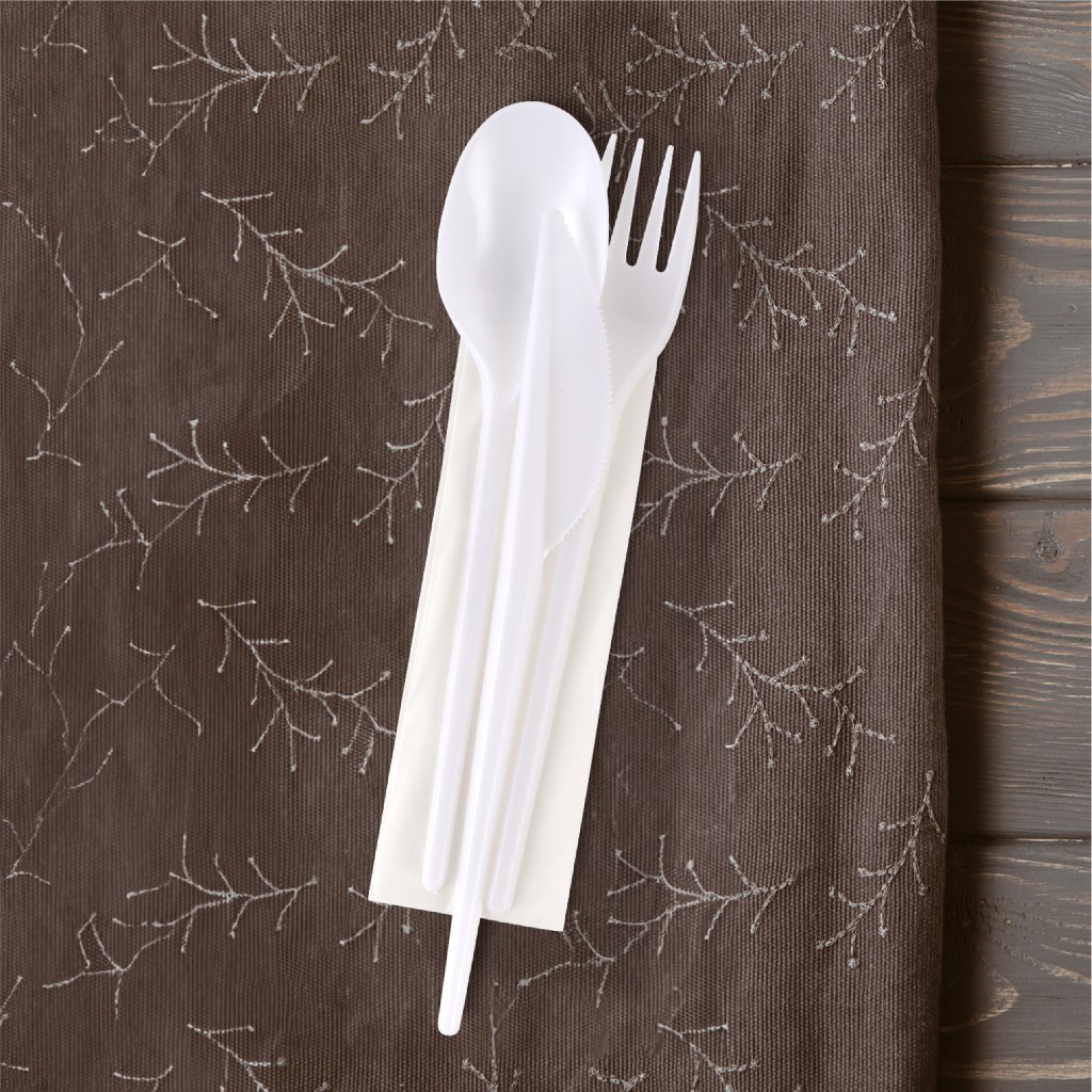 Experience seamless and enjoyable dining. Offering a high-quality design, the Packwell plastic 4-in-1 cutlery set offers exceptional durability and functionality for various needs. Made from premium-quality, BPA-free, and food-grade materials, this plastic cutlery set is safe and hygienic. The plastic set includes a spoon, fork, knife, and napkin. Each set weighs only 2.3 grams, making them light in weight, convenient to use, and large enough to hold a reasonable amount of food. The set has everything you need for a complete dining experience and is commonly used for packing, takeout, catering, large gatherings, etc. The spoon, knife, and fork have a comfortable and sturdy construction, which allows you to scoop, cut, and hold food easily. Additionally, the napkin is suitable for cleanliness. This pack contains 500 sets, so you’ll have enough to meet your needs. This plastic cutlery set is constructed of high-quality BPA-free and food-grade materials, ensuring your safety and prioritising your health. With its anti-bacterial and anti-fungal properties, food will remain fresh and free of bacterial or fungal growth. The cutlery set is also odour-proof at any temperature and does not absorb or retain odour from the food it holds. Their simple yet ergonomic design provides comfort. After use, dispose of the set responsibly. Made from the highest-quality materials, these plastic cutlery sets are a versatile and reliable investment for all your needs.