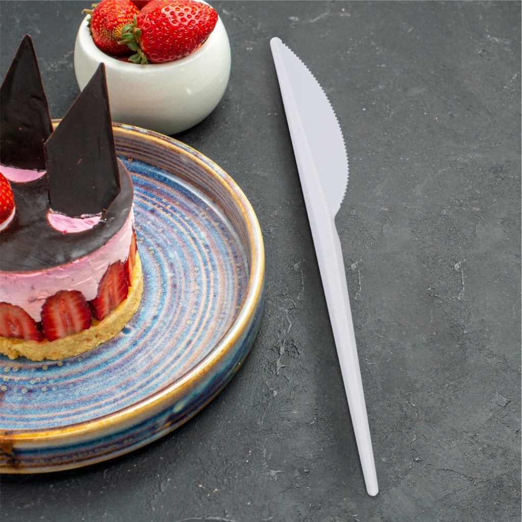 Experience ease and versatility. Offering a high-quality design, the Packwell plastic knife offers exceptional durability and functionality for various needs. Made from premium-quality, BPA-free, and food-grade materials, this plastic knife is safe and hygienic. These plastic knives weigh only 2.3 grams, making them light in weight, convenient to use, and large enough to hold a reasonable amount of food. It is commonly used for packing, takeout, catering, large gatherings, etc. to slice soft and sticky foods like brownies, spreads, cake, bread, some vegetables, etc. This pack contains 40 packets of 50 knives, so you’ll have enough to meet your needs. This plastic knife is constructed of high-quality BPA-free and food-grade materials, ensuring your safety and prioritising your health. With its anti-bacterial and anti-fungal properties, food will remain fresh and free of bacterial or fungal growth. The knife is also odour-proof at any temperature and does not absorb or retain odour from the food it holds. Their simple yet ergonomic design allows for comfort. Made from the highest-quality materials, these plastic knives are a versatile and reliable investment for all your needs.
